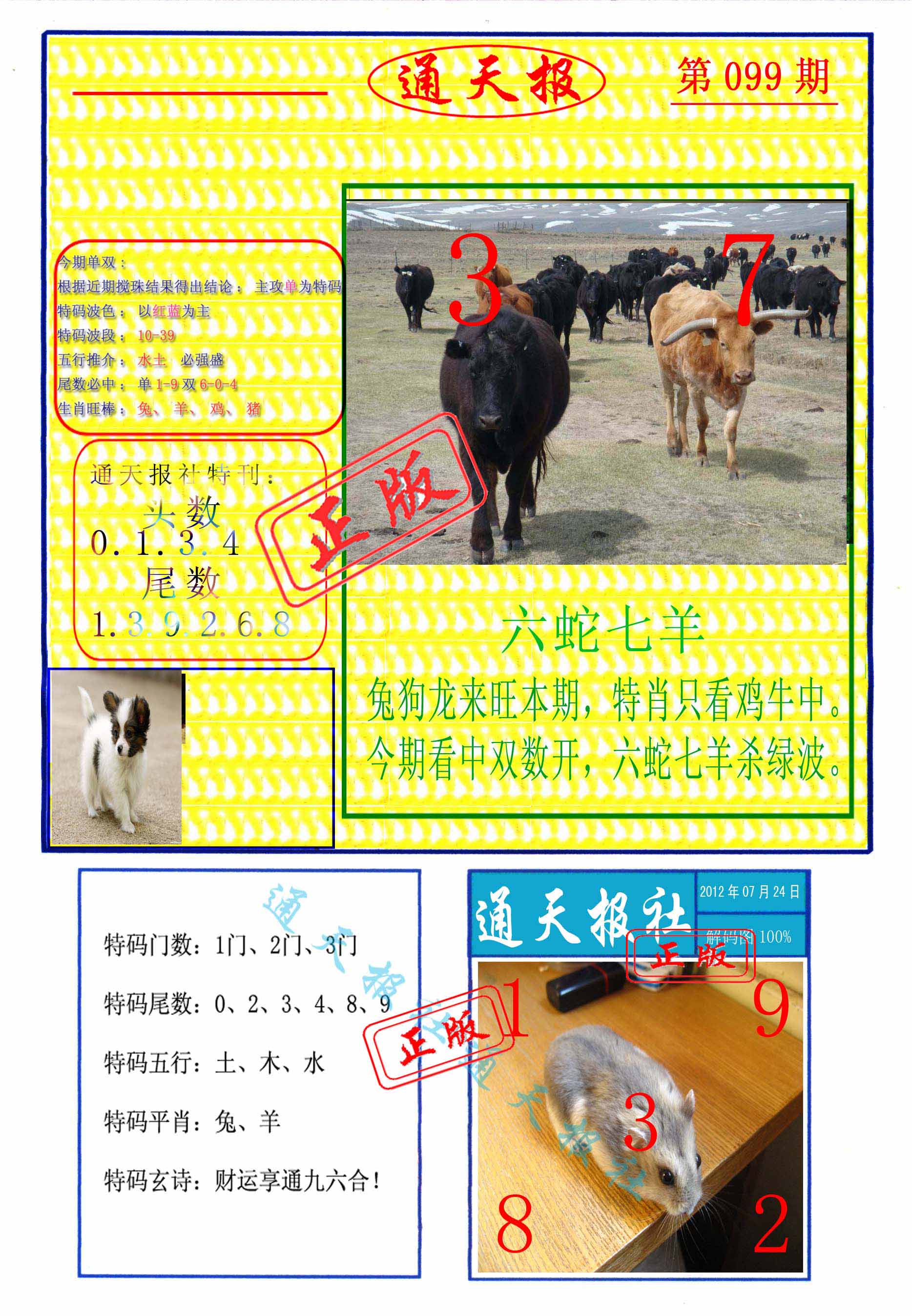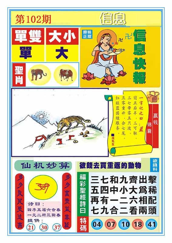 117期: 金牛王 【单数+小数】开:狗32错