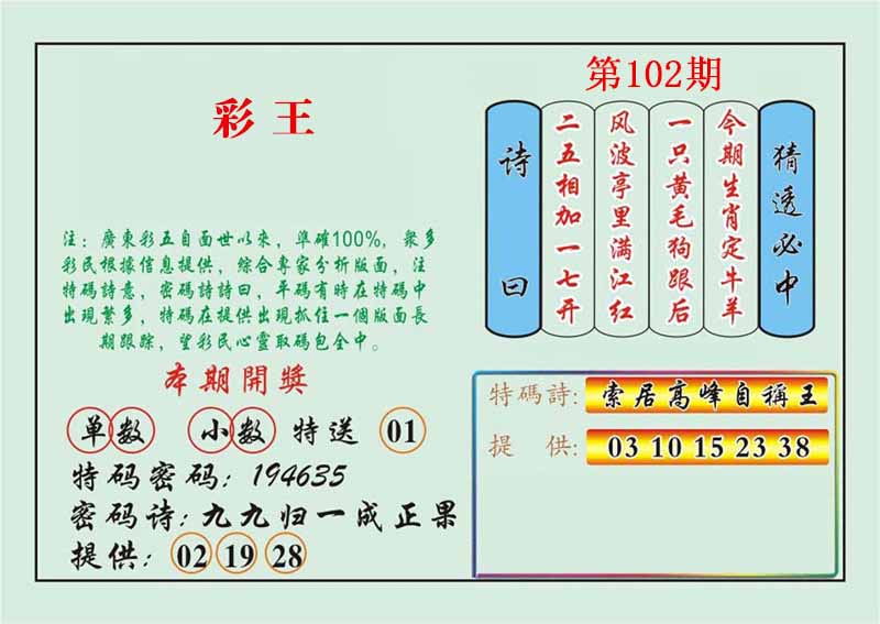 123期: 金牛王 【单数+大数】开:兔27准